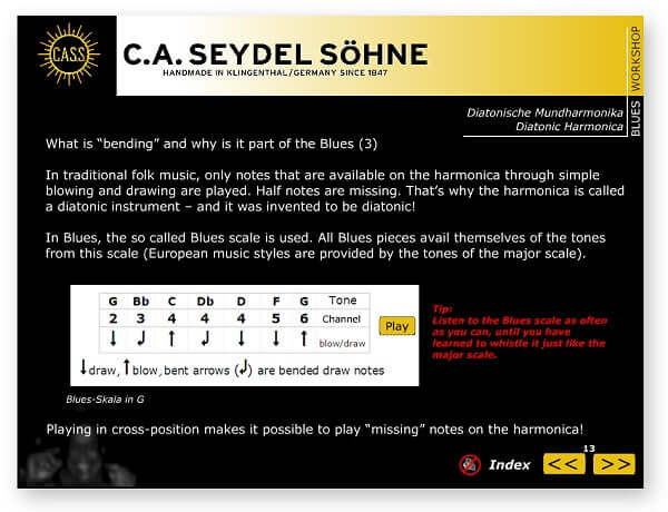 Inleidend boekje over de bluesharp mondharmonica met een online multimediaprogramma voor Mac / Windows / Linux