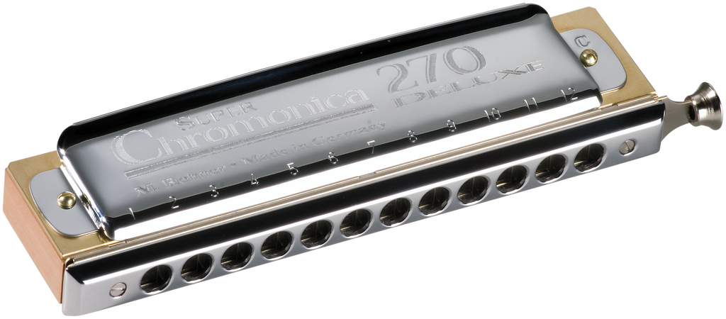 De 270 deluxe chromonica is een upgrade van de traditionele Super Chromonica 270 en is een mijlpaal voor de chromatische mondharmonica met een houten kam.