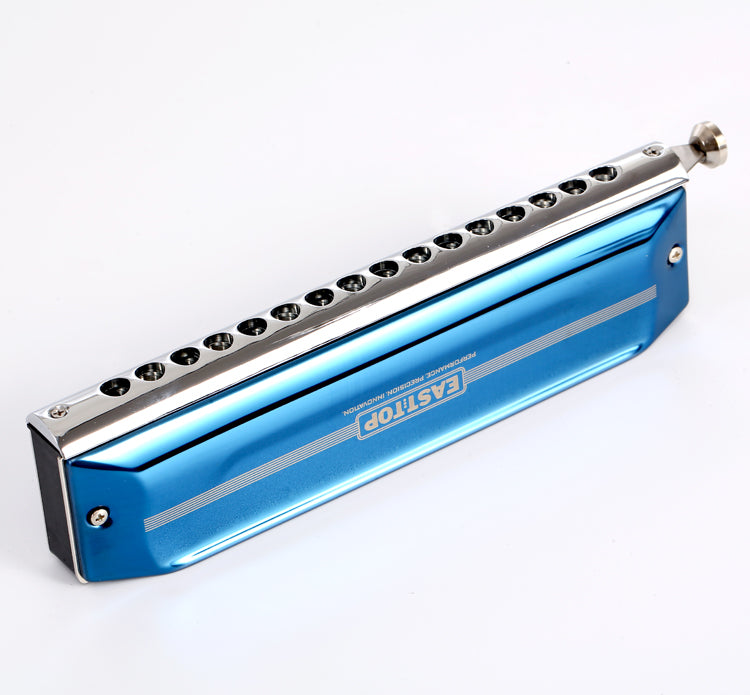 - Een nieuwe standaard in vakmanschap en bespeelbaarheid - Deze 16-gaats Performer is EASTTOP's professionele solo gestemde chromatische mondharmonica met een bereik van 4 octaven. De fosforbronzen rieten van de chromatische mondharmonica zijn geprofileerd voor toonaangevende respons en duurzaamheid. Speciale lucht besparende ventielen en het ABS kam-ontwerp garanderen toonaangevende respons en geluidsprojectie over het gehele bereik.