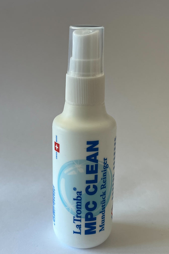 Sprayflacon, 80ml, desinfecterende reiniger voor muziekinstrumenten, ook bij andere instrumenten te gebruiken. Het middel verwijderd residu na het spelen van de mond en lippen, ter gelijkertijd is het middel ook desinfecterend en geeft het een verfrissende geur.